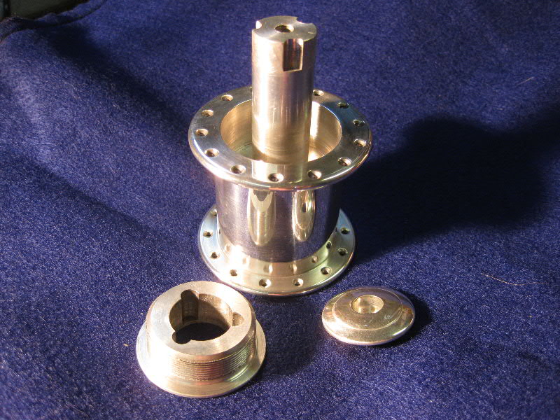 Part 4 of Project Right. The frame is coming along nicely, not done, but lots of progress. The rear hub is finished. 3 steel pins were placed between the axle and the carrier to transmit the torque and an endcap holds the whole thing in the frame. The hub is polished and ready to go to anodizing. Also the extremely heavy 500+gram Phil Wood belt freewheel has been trimmed by more than 100 grams of unecessary weight.