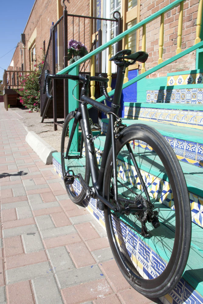 New Mexico’s mountainous Gila National Forest is a road climber’s mecca. Specifically, Silver City is home to one of the hardest stage races in ‘Merica, with roads crossing the continental divide several times. The steep high altitude climbs force you to put up or shut up, and are followed by hair raising descents that test your mettle. A customer of ours from the region commissioned us to build this custom Parlee Z5 SLi to handle the rigors of these rides found in her backyard, built around the idea that a lightweight climbing bike shouldn’t sacrifice descending, nor handling capabilities.