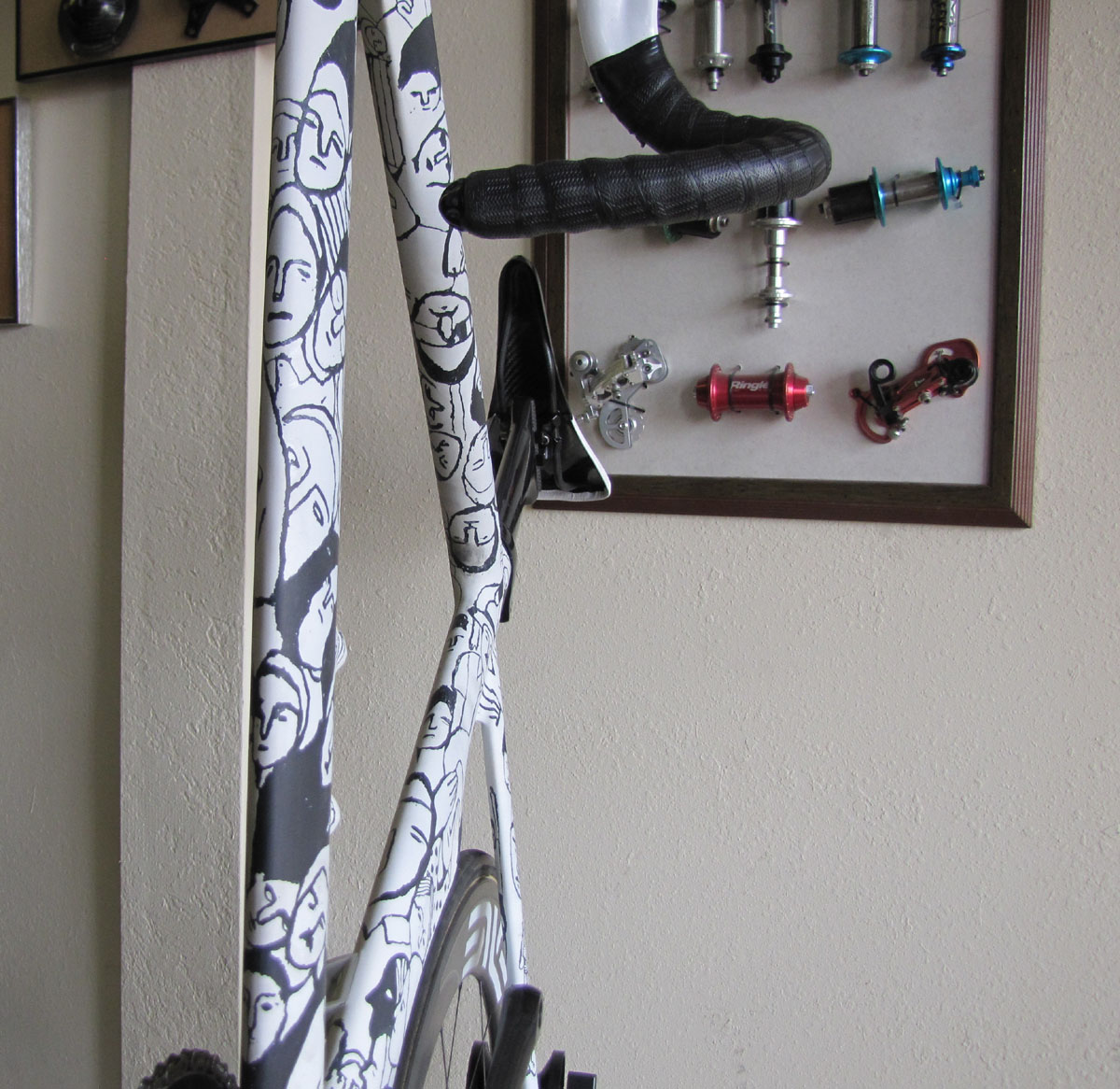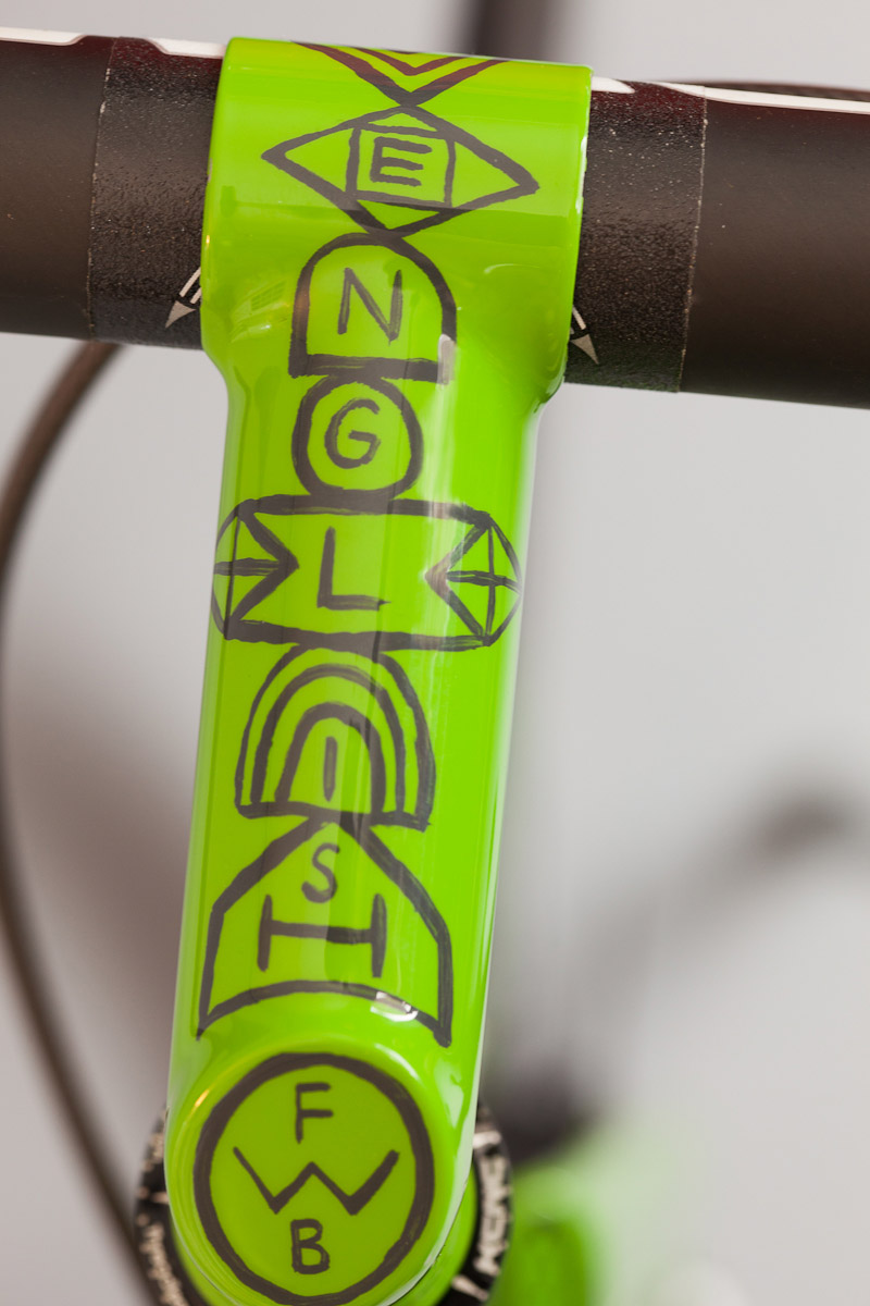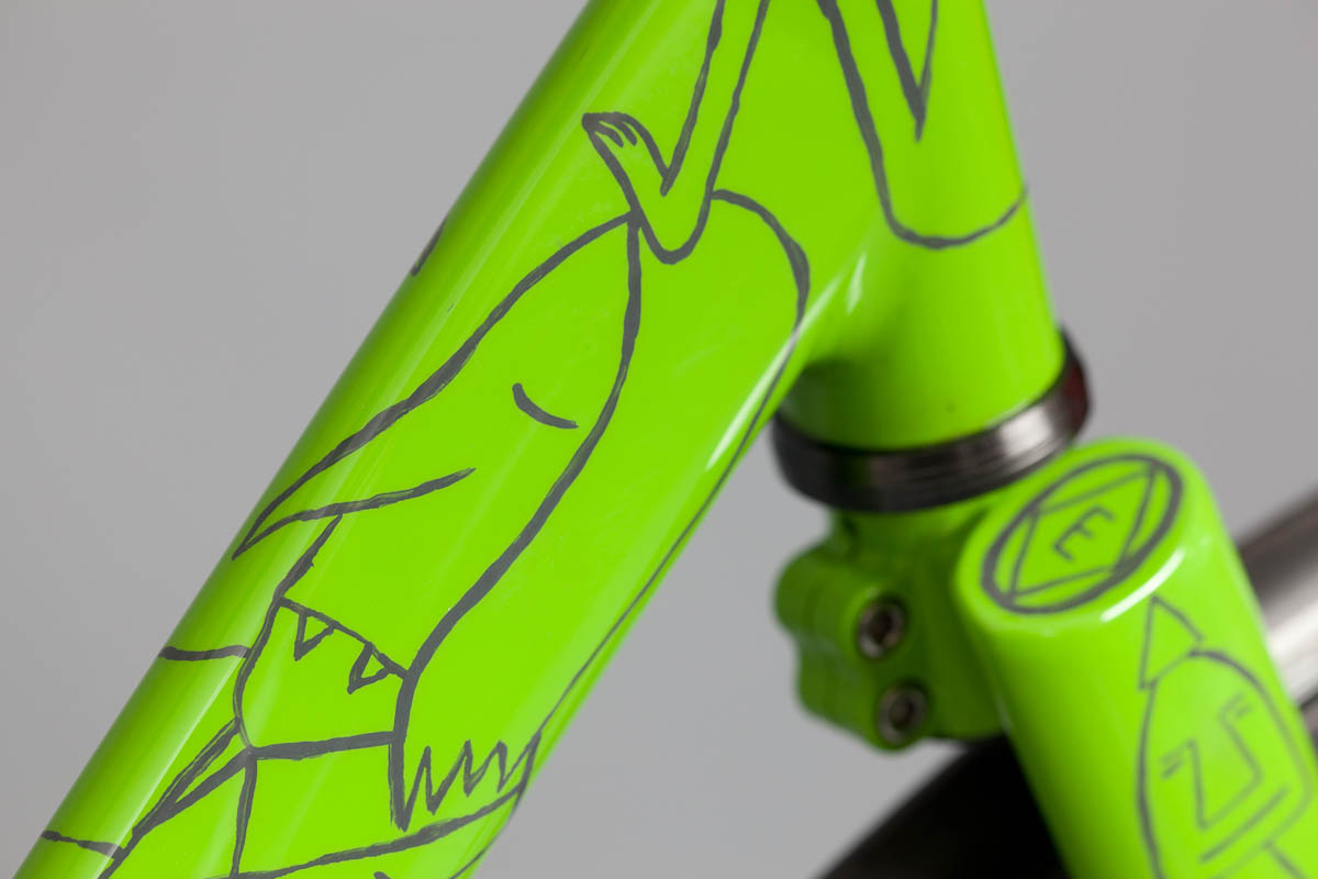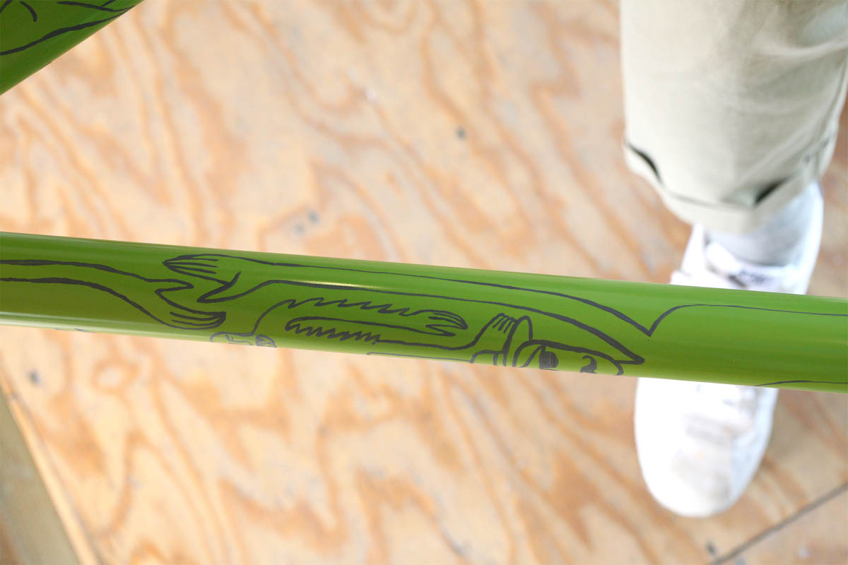 This week someone had asked me to pick some of my favorite project bikes and send them more detailed photos. In thinking about this I realized 3 of my 5 top choices had one thing in common, artist Geoff Mcfetridge. Not too many people get to work with such an awesome artist and I feel lucky that I’ve been able to work with Geoff on 3 projects so far, and hopefully another chance will come up in the future. If you aren’t totally familiar with his work, I’d suggest clicking this link and taking a look. Since we’ve now taken some new photos and pulled some never before seen ones from the archives it seemed like a good idea to share them. I’ve tried to use mostly detail shots that focus on the paint rather than the complete bikes. So without any more delay on to the pictures.