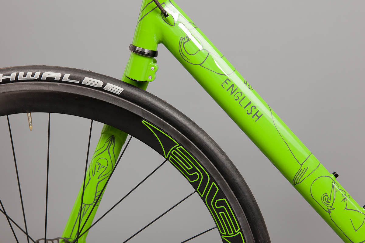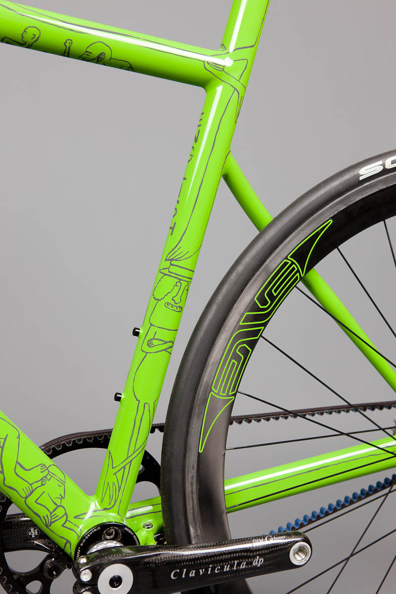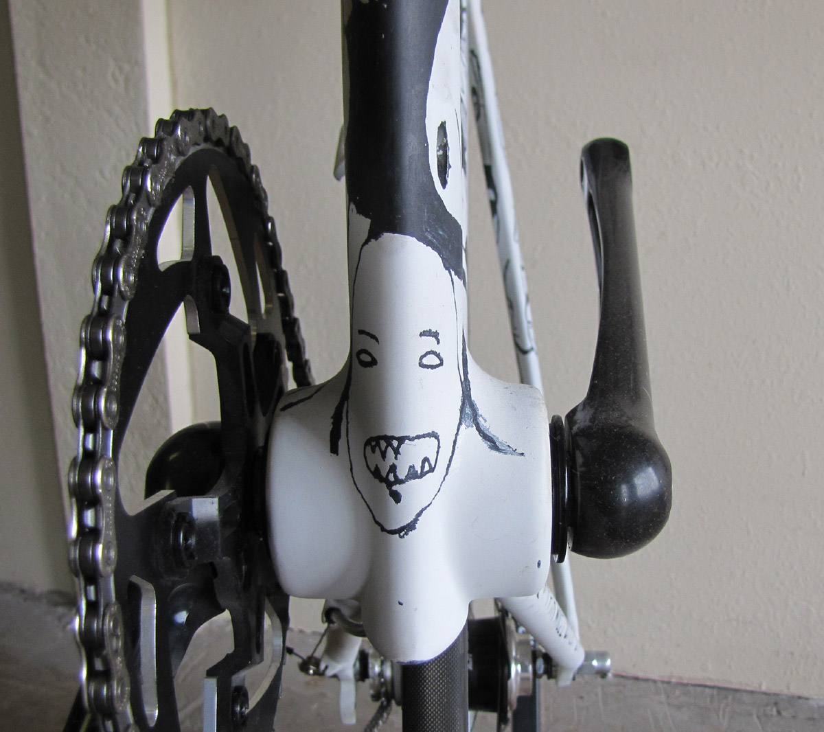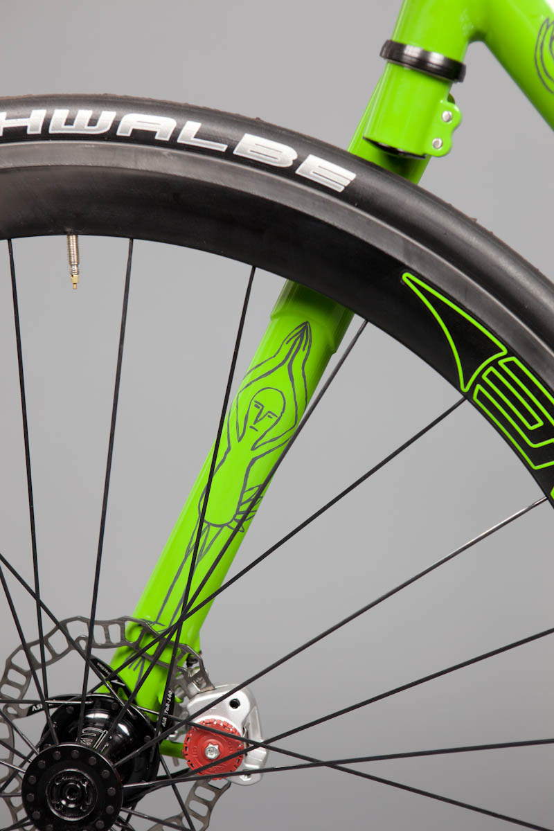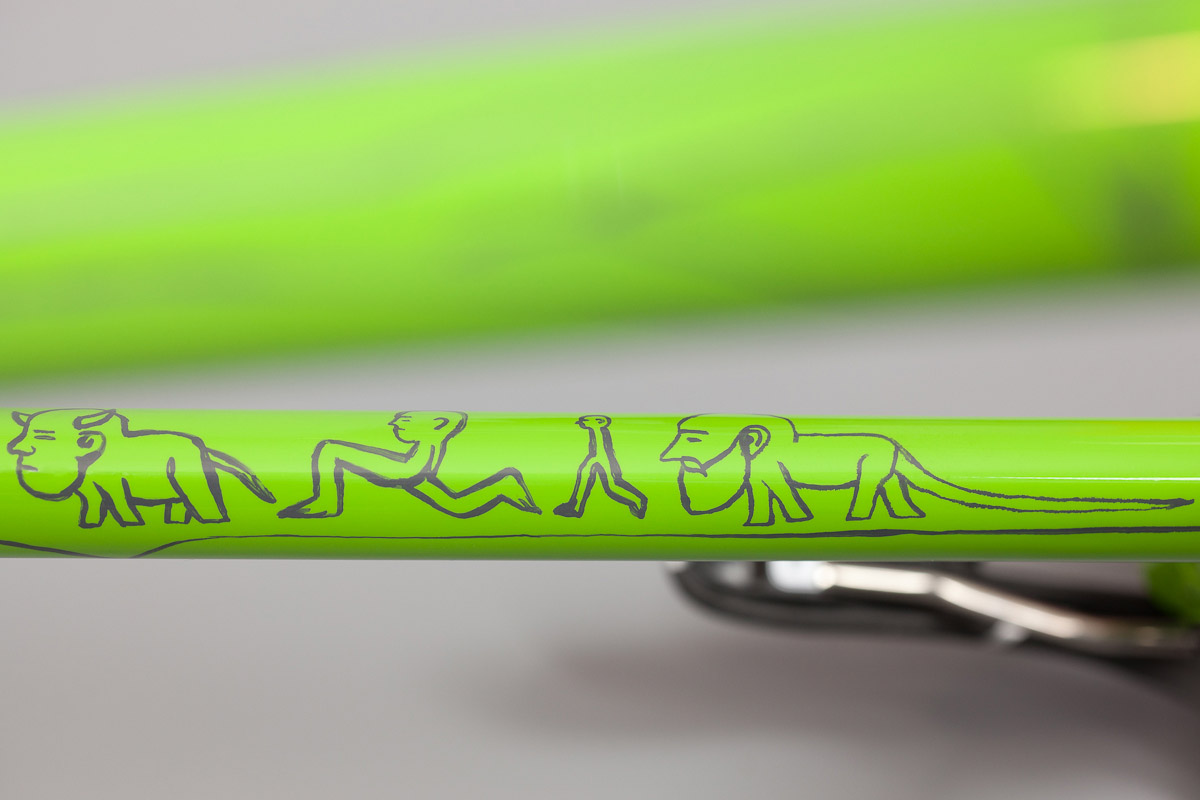This week someone had asked me to pick some of my favorite project bikes and send them more detailed photos. In thinking about this I realized 3 of my 5 top choices had one thing in common, artist Geoff Mcfetridge. Not too many people get to work with such an awesome artist and I feel lucky that I’ve been able to work with Geoff on 3 projects so far, and hopefully another chance will come up in the future. If you aren’t totally familiar with his work, I’d suggest clicking this link and taking a look. Since we’ve now taken some new photos and pulled some never before seen ones from the archives it seemed like a good idea to share them. I’ve tried to use mostly detail shots that focus on the paint rather than the complete bikes. So without any more delay on to the pictures.