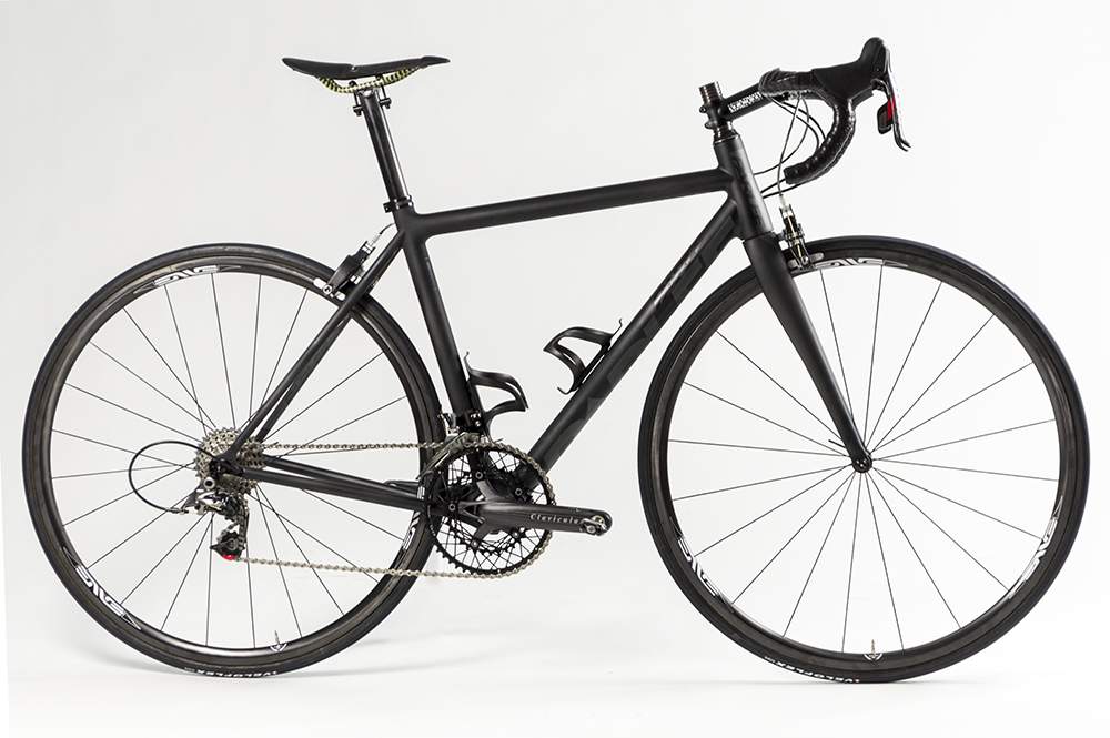 The foundation for this build is a pair of Parlee Z5SLi’s, sturdy and stiff but still a comfortable frameset. There are a few small differences in the build list to better fit each rider, tubulars here and clinchers there. Two high performance machines, hidden under a tasteful matte black color scheme. Both bikes are built up with strong, lightweight components that will stand up to daily riding.