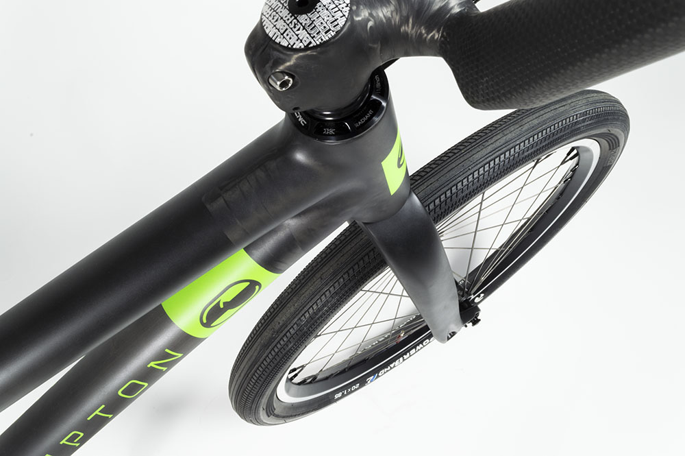 - Custom handbuilt carbon dropouts, Recon titanium cog and custom Tune hub