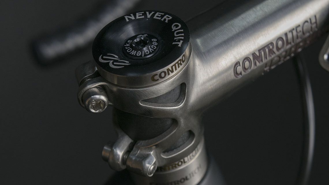 We fitted the new Thm Clavicula SE because it’s light but also because Thm has such a solid long term track record. We also chose not particularly light cockpit and post parts which are titanium from Control Tech. We chose them partly because they are bombproof but also because they looked so good on this bike.