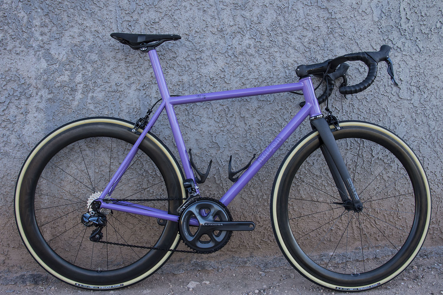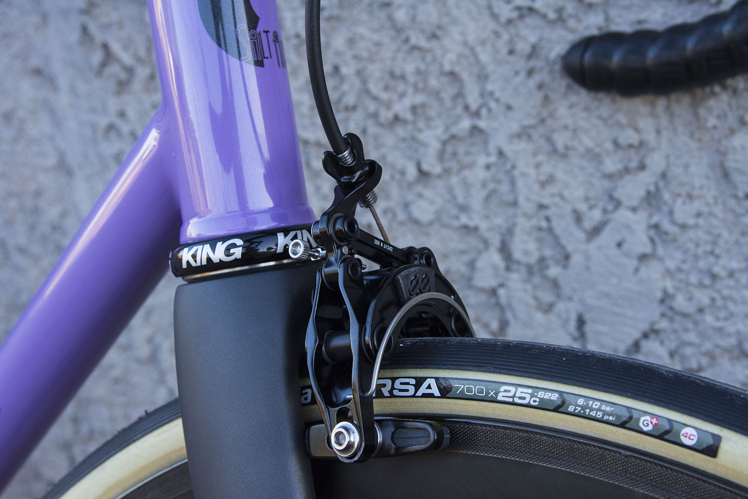 A few days ago, we had the pleasure of helping our friend Julian build up his new steel “dream” bike for the North American Handmade Bicycle Show. As a seasoned road racer and bonafide cycling nut, Julian commissioned a very modern frame equipped with a tapered fork, integrated seat mast, and Di2-specific frame fittings.