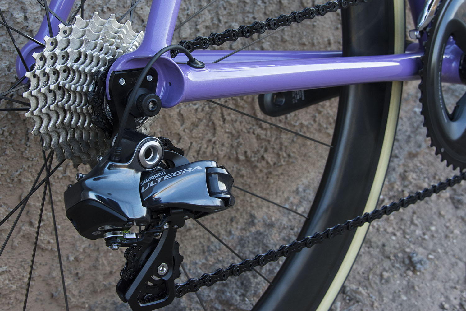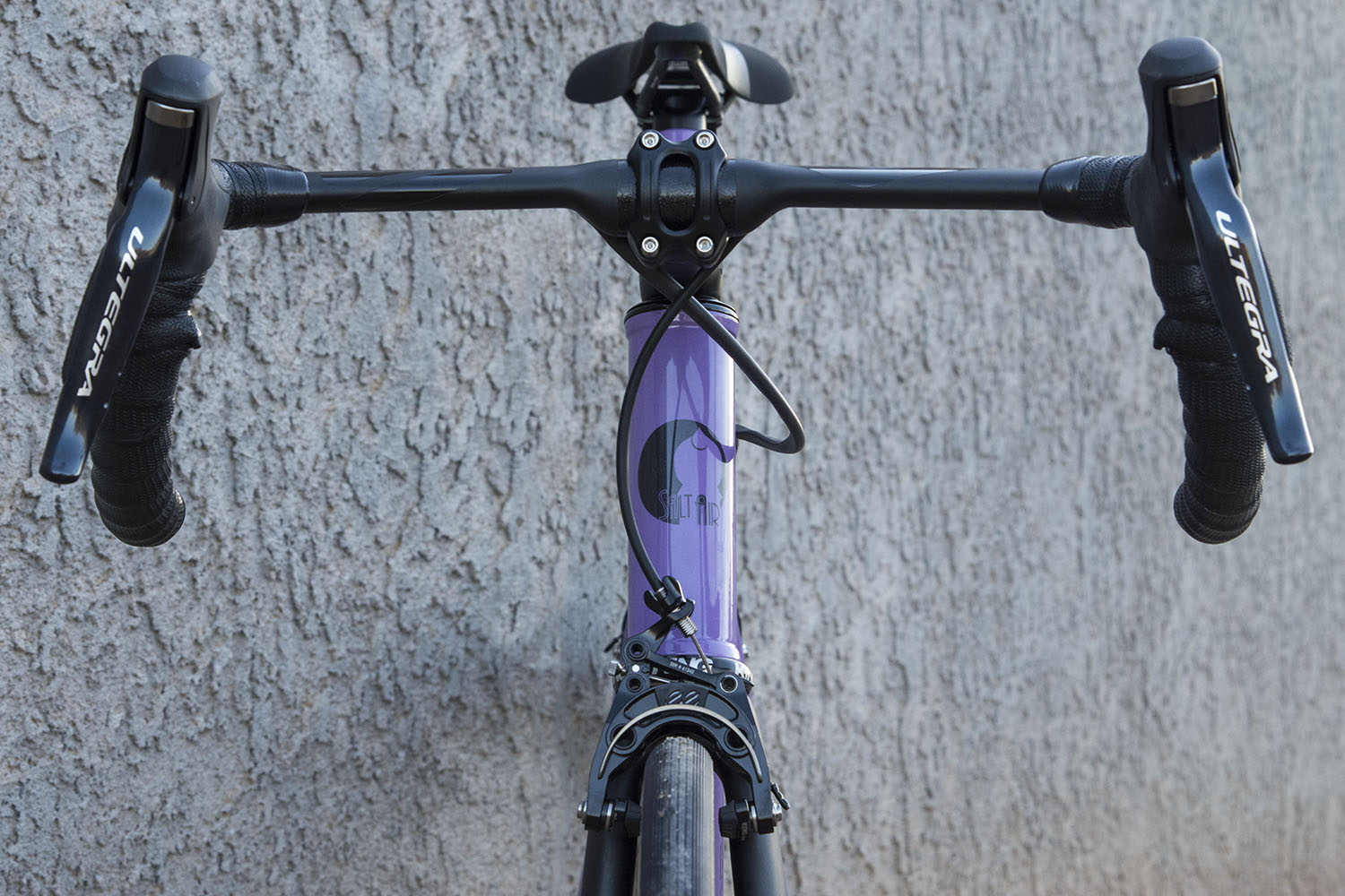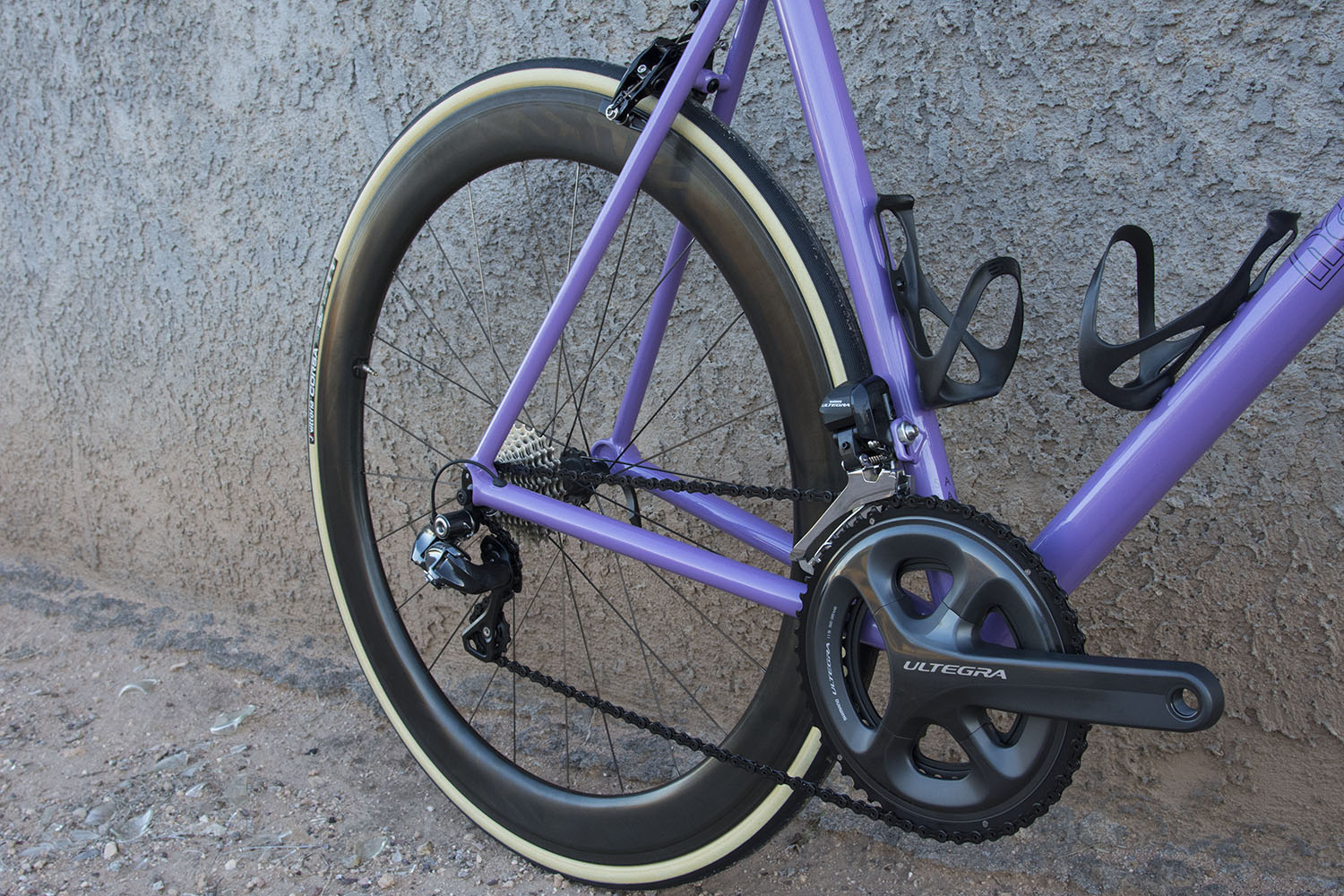 It’s safe to say we’ve always been huge fans of Enve Composites, and we convinced Julian to go “all in” on premium carbon components. With Enve SES 4.5 rims, Enve hubs, Enve skewers, Enve Aero handlebars, an Enve stem, and Enve bottle cages, we included as much of the Enve catalog as we could. Coincidentally, even the custom seat mast was built using Enve’s saddle rail clamps. A pair of Cane Creek’s EE brakes and an Ultegra 6870 drivetrain round out this truly beautiful build.