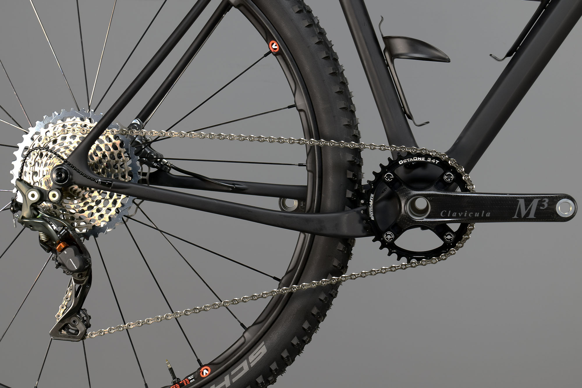 Crankset: We opted for the THM M3 (372 grams), one of the lightest carbon cranks on the market, along with a RaceFace BB92 (56 grams) bottom bracket, Extralite OctaOne chainring (31 grams) and Parts of Passion chainring bolts (4 grams). The POP bolts were at half their normal weight since the Extralite chainring already has the female part integrated.