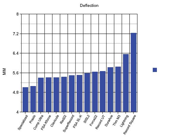 than the other tested Campag cranks. In terms of deflection it was 3rd out of 15 which landed it’s stiffness to